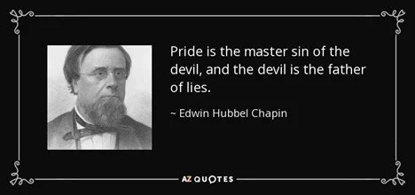 “For from within, out of the heart of man, come evil thoughts, sexual immorality, theft, murder, adultery, coveting, wickedness, deceit, sensuality, envy, slander, PRIDE, foolishness. All these evil things come from within, and they defile a person.” – Jesus, Mark 7:21-23